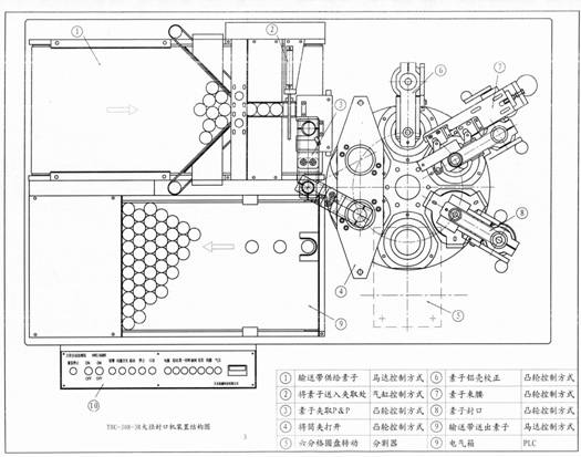 2、本機采用人機界面及PLC電路控制,由伺服馬達帶動筒夾旋轉,完成產品的束腰、封口。