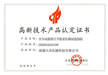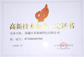 2007年8月,我公司被江蘇省科技廳評(píng)審為江蘇省高新技術(shù)企業(yè)。
